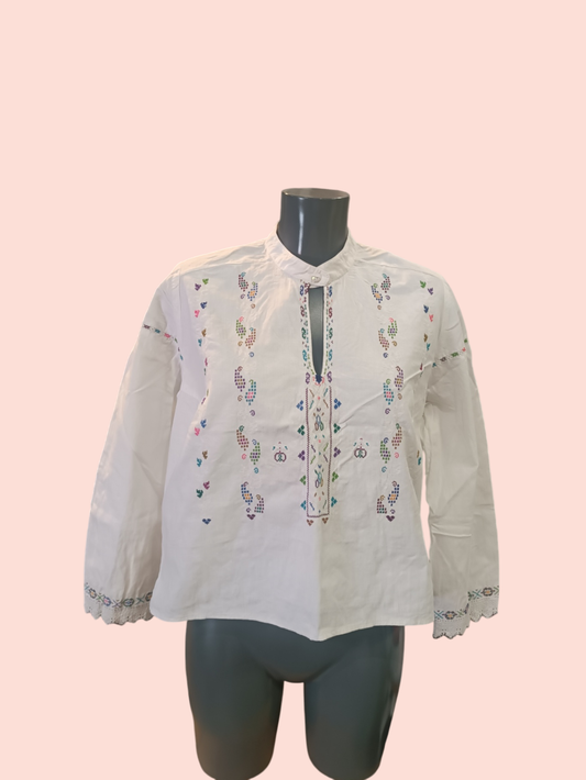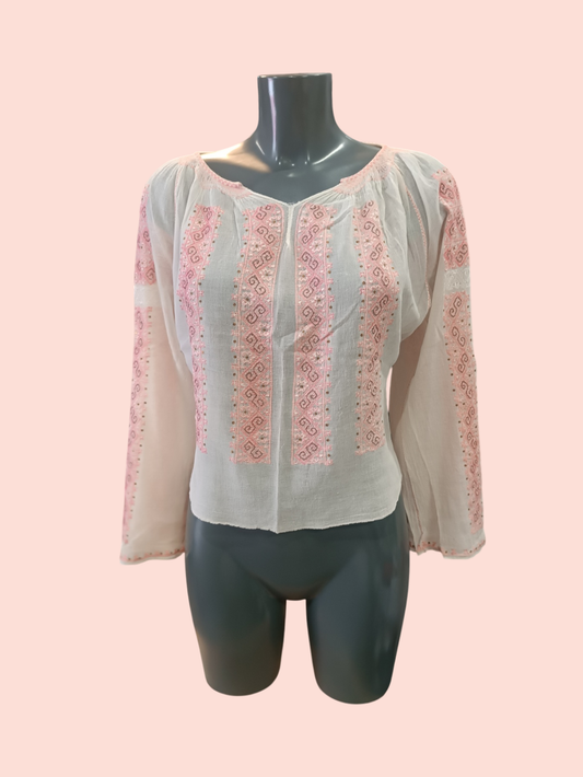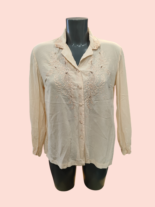 Vintage Bluse mit Stickerei S/M Einfärbig
