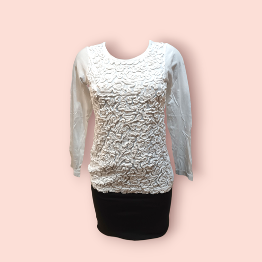 Blue Code Hemdblusenkleid L weiß mit beigen Verziehrungen