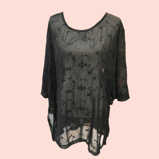 AusverkauftBluse 2XL Schwarz, Weiß, Grau