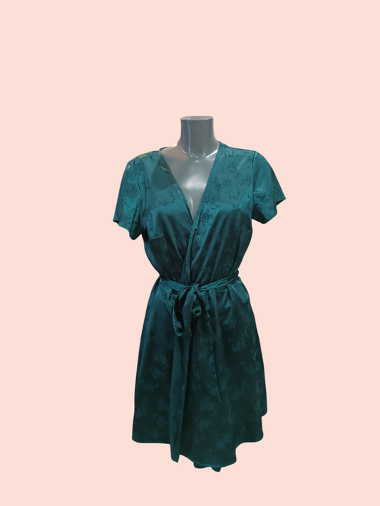 Vintage handgenäht Seidenkleid XL Dunkelgrün