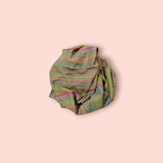 Schal Bunt (mit hellgelben, pinken, grauen Tönen)