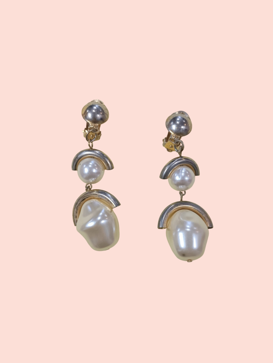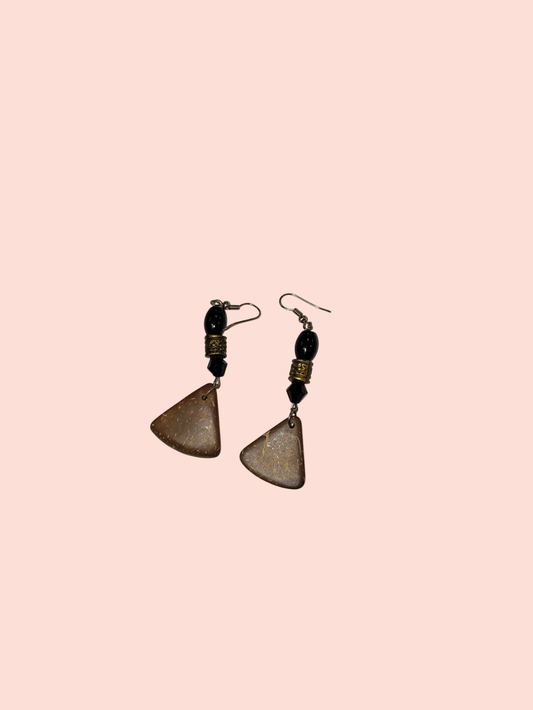 Vintage Ohrringe braune Plättchen mit schwarz-goldenen Steinen